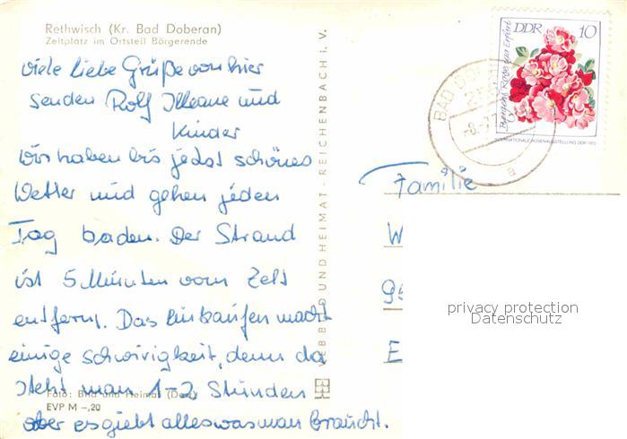 72703575 alte Postkarte Boergerende-Rethwisch Zeltplatz postalisch gelaufen Erhaltung siehe scans [FriedD77] KatCode: 11110013051013