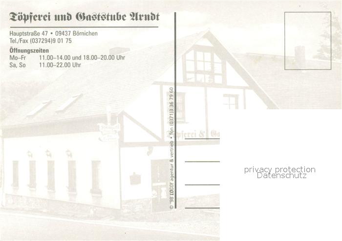 73658846 Boernichen Erzgebirge Toepferei und Gaststube Arndt postalisch nicht gelaufen Erhaltung siehe scans [FriedD77] KatCode: 11110014181030