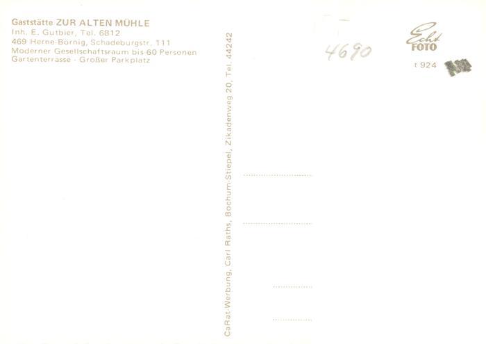 73869813 Boernig Sodingen Herne Gaststaette zur alten Muehle Gastraeume Bar postalisch nicht gelaufen Erhaltung siehe scans [FriedD77] KatCode: 11110005916000