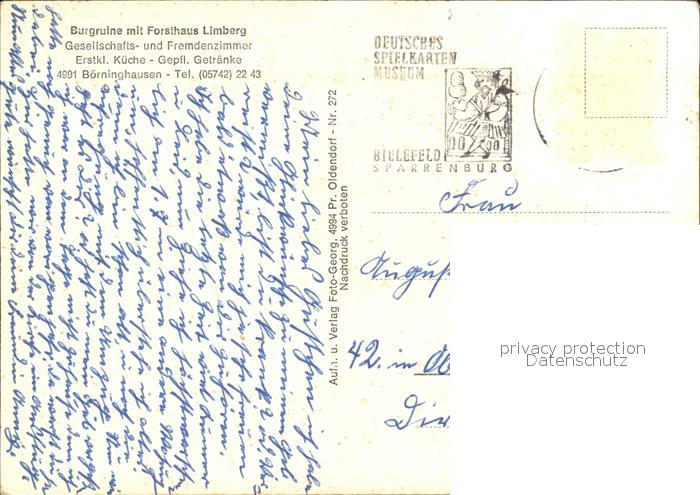 72525703 alte Postkarte Boerninghausen Burgruine mit Forsthaus Limberg postalisch gelaufen Erhaltung siehe scans KatCode: 11110005770036