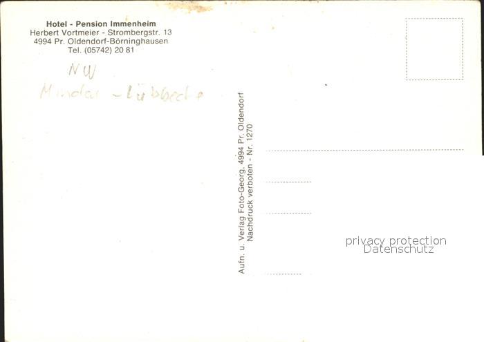 72225461 Boerninghausen Hotel Pension Immenheim postalisch nicht gelaufen Erhaltung siehe scans KatCode: 11110005770036