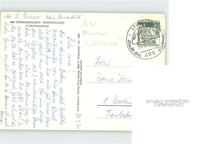 72255158 alte Postkarte Boerninghausen mit Eininghausen im Wiehengebirge Panorama postalisch gelaufen Erhaltung siehe scans KatCode: 11110005770036