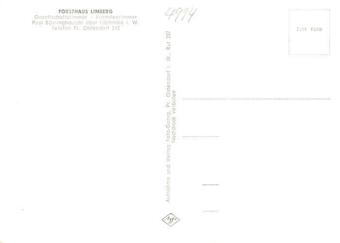 73875845 Boerninghausen Preussisch Oldendorf Forsthaus Limberg postalisch nicht gelaufen Erhaltung siehe scans [FriedD77] KatCode: 11110005770036