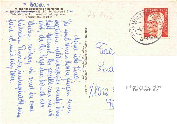 74035991 alte Postkarte Boerninghausen Preussisch Oldendorf Wiehengebirgspension Immenheim Gastraum Park Springbrunnen postalisch gelaufen Erhaltung siehe scans [FriedD77] KatCode: 11110005770036