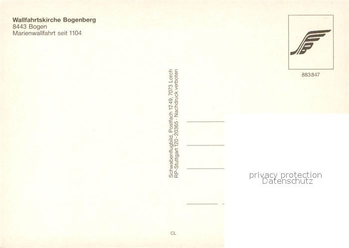 73173419 Bogen Niederbayern Fliegeraufnahme Wallfahrtskirche Bogenberg postalisch nicht gelaufen Erhaltung siehe scans [KathaD81] KatCode: 11110009278118