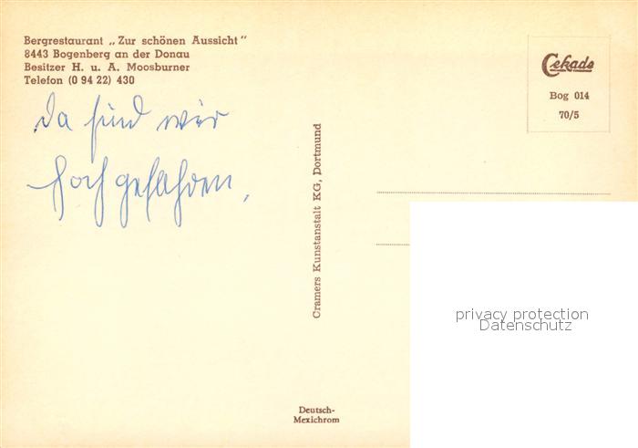 73231166 Bogenberg Niederbayern Bergrestaurant Zur sch?nen Aussicht postalisch nicht gelaufen Erhaltung siehe scans [KathaD81] KatCode: 11110009278118