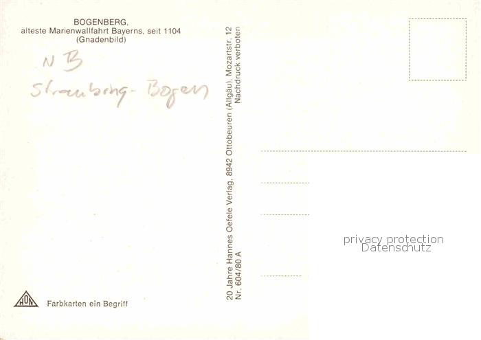 72889958 Bogenberg Niederbayern Kirche aelteste Marienwallfahrt Bayerns Gnadenbild postalisch nicht gelaufen Erhaltung siehe scans [FriedD77] KatCode: 11110009278118