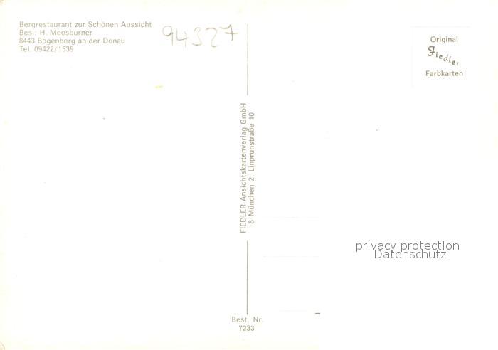 73227835 Bogenberg Niederbayern Restaurant zur schoenen Aussicht postalisch nicht gelaufen Erhaltung siehe scans [LiesaD40] KatCode: 11110009278118