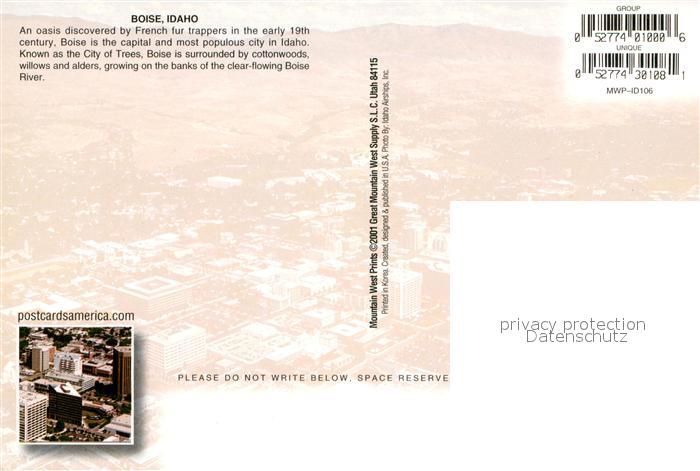 73743884 Boise Idaho Aerial view postalisch nicht gelaufen Erhaltung siehe scans [WerneD78] KatCode: 14140140000000