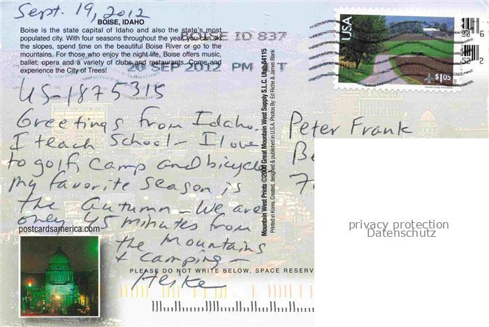 74137890 old postcard Boise Idaho USA Panorama at night postalisch gelaufen Erhaltung siehe scans [WerneD78] KatCode: 14140140000000