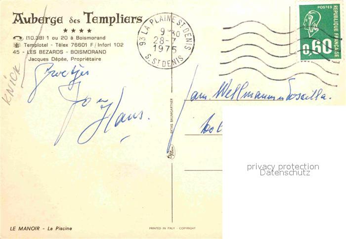 12665147 carte postale Boismorand Auberge des Templiers postalisch gelaufen Erhaltung siehe scans [WerneD78] KatCode: 11170045145036