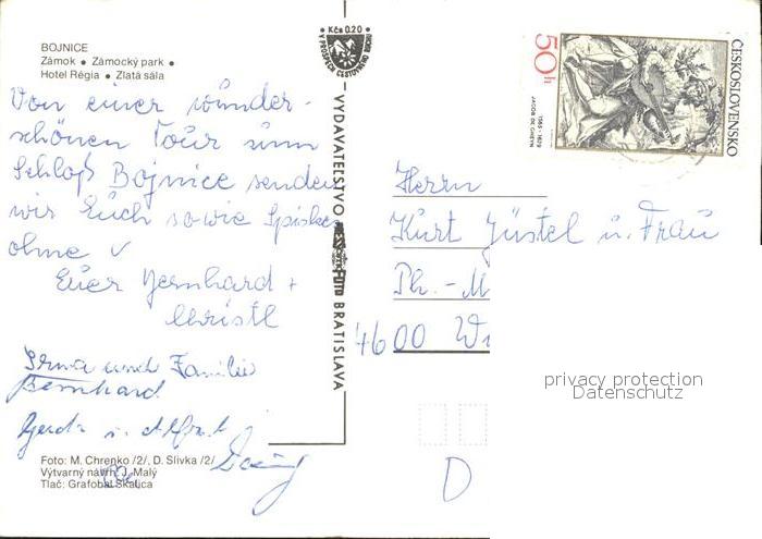 old postcard Bojnice Zamok Zamocky park Hotel Regia Zlata sala Schloss postalisch gelaufen Erhaltung siehe scans