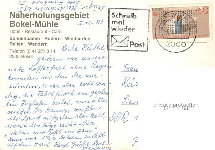 73641872 alte Postkarte Bokel Elmshorn Hotel Restaurant Bokel Muehle Gastraeume Rudern Hallenbad postalisch gelaufen Erhaltung siehe scans [WerneD78] KatCode: 11110001056006