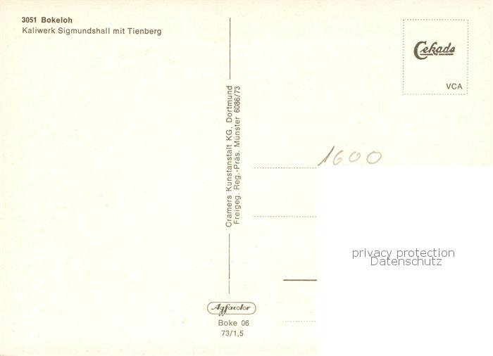 73831996 Bokeloh Wunstorf Niedersachsen Fliegeraufnahme Kaliwerk Sigmundshall mit Tienberg postalisch nicht gelaufen Erhaltung siehe scans [WerneD78] KatCode: 11110003241021