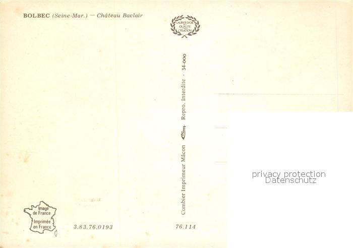 13521920 Bolbec Chateau Baclair postalisch nicht gelaufen Erhaltung siehe scans [KathaD81] KatCode: 11170076276114