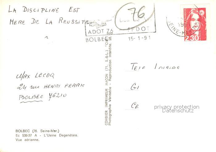 13146488 carte postale Bolbec Fliegeraufnahme postalisch gelaufen Erhaltung siehe scans [LiesaD40] KatCode: 11170076276114