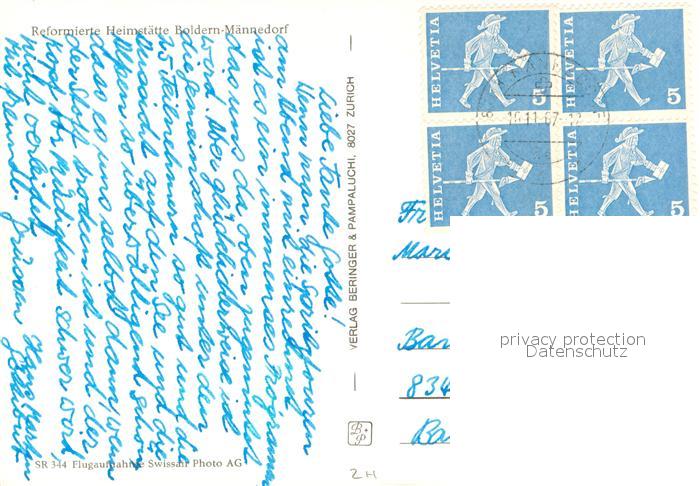 13728337 alte Postkarte Boldern Maennedorf ZH Reformierte Heimstaette postalisch gelaufen Erhaltung siehe scans [WerneD78] KatCode: 11470260895364