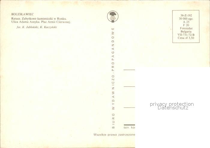 Boleslawiec Bunzlau Ratusz Zabytkowe kamieniczki w Rynku Ulica Adama Asnyka Plac Armii Czerwonej postalisch nicht gelaufen Erhaltung siehe scans