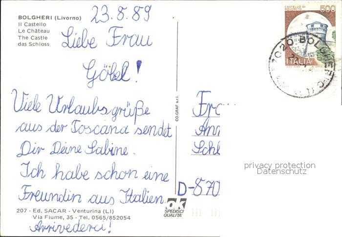 old postcard Bolgheri Il Castello postalisch gelaufen Erhaltung siehe scans
