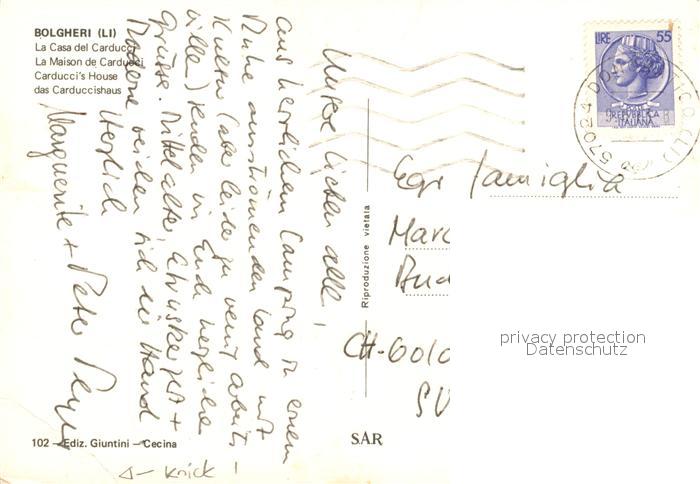 old postcard Bolgheri La Casa del Carducci postalisch gelaufen Erhaltung siehe scans [FriedD77]