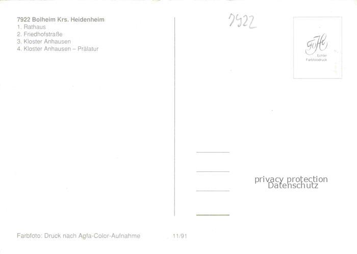 74041103 Bolheim Rathaus Friedhofstrasse Kloster Anhausen Praelatur postalisch nicht gelaufen Erhaltung siehe scans [FriedD77] KatCode: 11110008135020