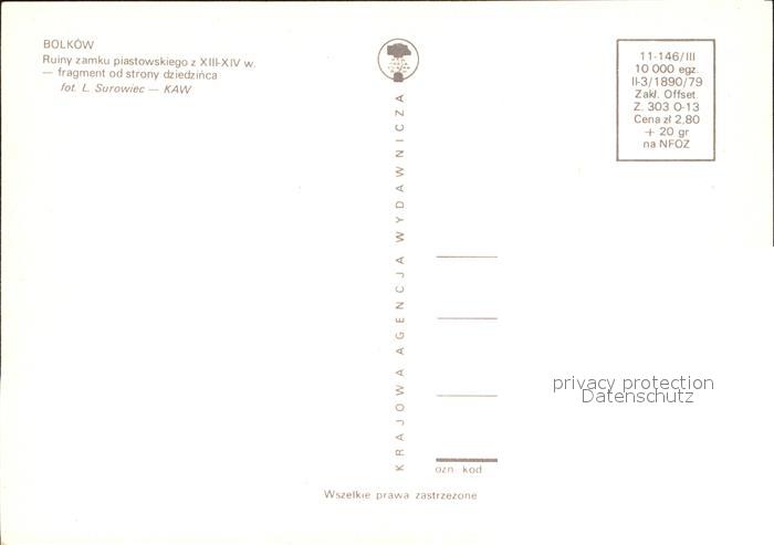 72408265 Bolkow Ruiny zamku piastowskiego fragment postalisch nicht gelaufen Erhaltung siehe scans KatCode: 11110013053062