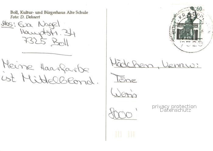 73649721 alte Postkarte Boll Bad Kultur und Buergerhaus Alte Schule postalisch gelaufen Erhaltung siehe scans [WerneD78] KatCode: 11110008117012