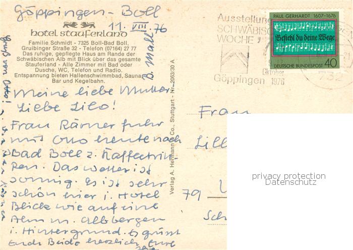 73771195 alte Postkarte Boll Goeppingen Badhotel Stauferland postalisch gelaufen Erhaltung siehe scans [WerneD78] KatCode: 11110008117012
