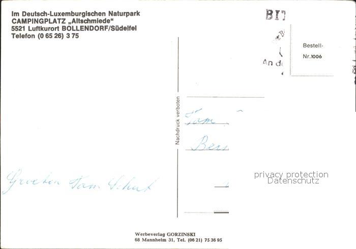 72254674 alte Postkarte Bollendorf Suedeifel Campingplatz Altschmiede Luftkurort Eifel postalisch gelaufen Erhaltung siehe scans KatCode: 11110007232019