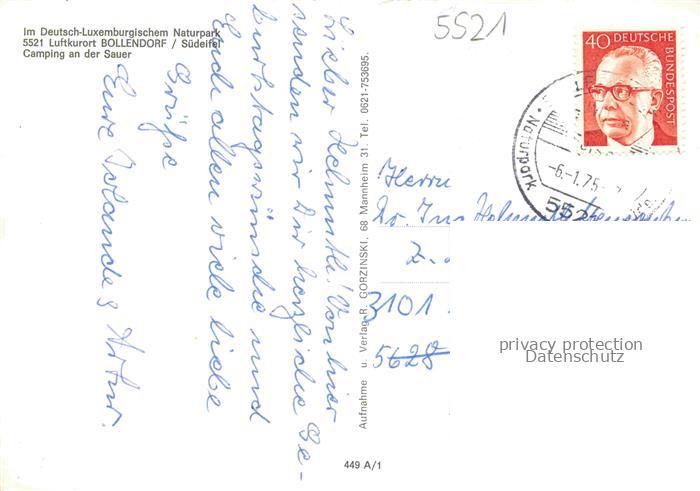 74055181 alte Postkarte Bollendorf Suedeifel Eifelkreis Bitburg-Pruem Rheinland-Pfalz Camping an der Sauer postalisch gelaufen Fliegeraufnahme Erhaltung siehe scans [WerneD78] KatCode: 11110007232019