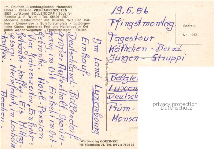 73844696 Bollendorf Suedeifel Hotel Pension Vierjahreszeiten postalisch nicht gelaufen Erhaltung siehe scans [WerneD78] KatCode: 11110007232019