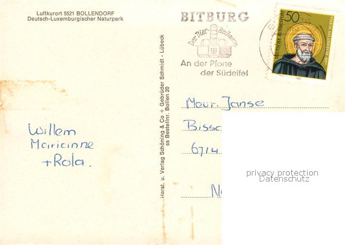 72944618 alte Postkarte Bollendorf Suedeifel Panorama Luftkurort Deutsch Luxemburgischer Naturpark postalisch gelaufen Erhaltung siehe scans [FriedD77] KatCode: 11110007232019