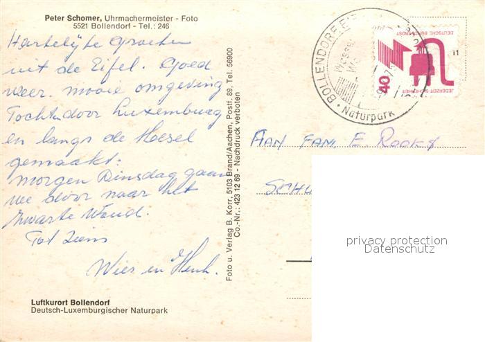 72930818 alte Postkarte Bollendorf Suedeifel Peter Schomer Uhrmachermeister postalisch gelaufen Erhaltung siehe scans [LiesaD40] KatCode: 11110007232019