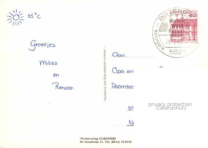 72919327 alte Postkarte Bollendorf Suedeifel Schloss Schwimmbad postalisch gelaufen Erhaltung siehe scans [NatalD47] KatCode: 11110007232019