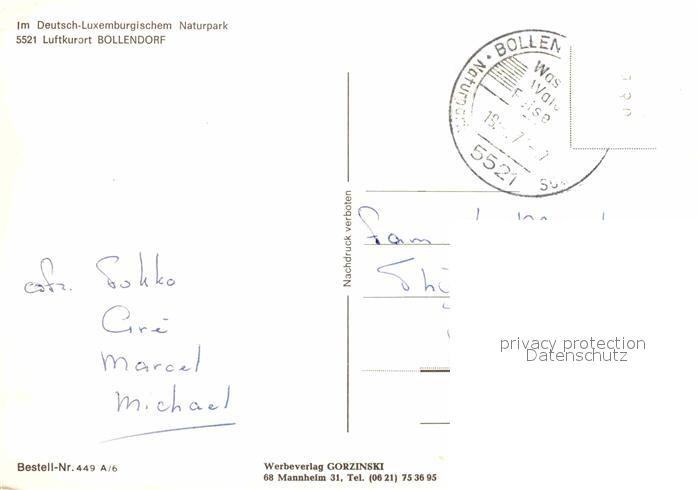 72914986 alte Postkarte Bollendorf Suedeifel Teilansicht Luftkurort im Naturpark Suedeifel postalisch gelaufen Erhaltung siehe scans [FriedD77] KatCode: 11110007232019
