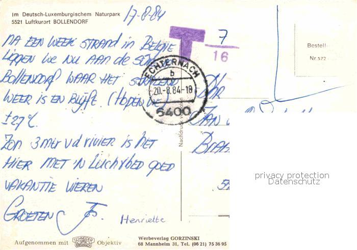 72863761 alte Postkarte Bollendorf Suedeifel Teilansichten Luftkurort Deutsch Luxemburgischer Naturpark postalisch gelaufen Erhaltung siehe scans [FriedD77] KatCode: 11110007232019