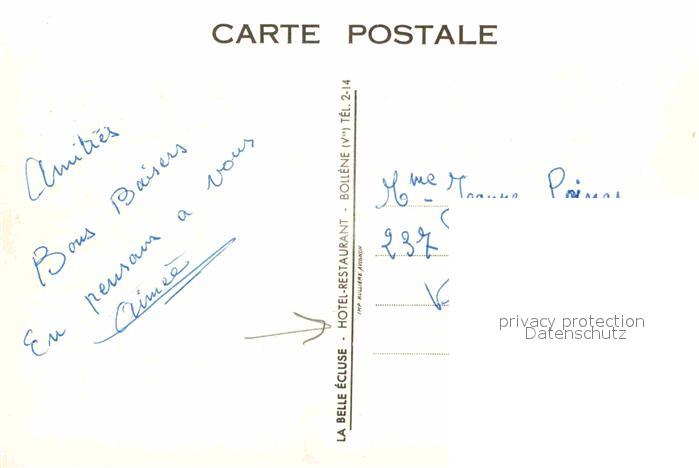 12889635 carte postale Bollene Hotel Restaurant postalisch gelaufen Erhaltung siehe scans [AndreD76] KatCode: 11170084284019