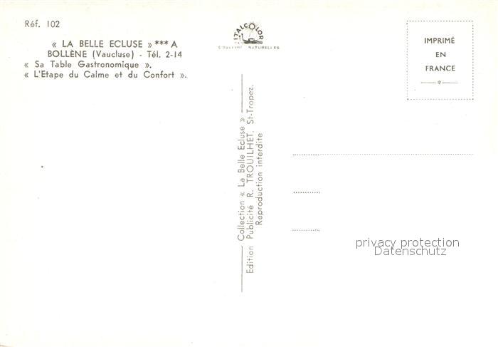 12946900 Bollene La Belle Ecluse postalisch nicht gelaufen Erhaltung siehe scans [KathaD81] KatCode: 11170084284019