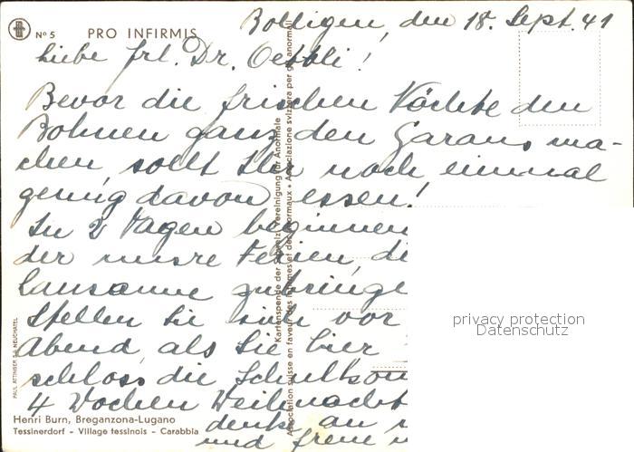 11643911 alte Postkarte Bolligen Pro Infirmis Kuenstlerkarte postalisch gelaufen Erhaltung siehe scans KatCode: 11470060125884