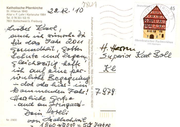 73932111 alte Postkarte Bollschweil Katholische Pfarrkirche St. Hilarius Innenansichten Altar Landschaftspanorama Schwarzwald postalisch gelaufen Erhaltung siehe scans [FriedD77] KatCode: 11110008315014