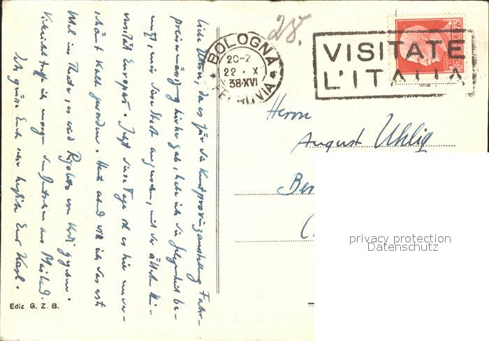 old postcard Bologna Fliegeraufnahme postalisch gelaufen Erhaltung siehe scans