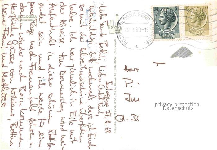 74136468 old postcard BOLOGNA IT Panorama postalisch gelaufen Erhaltung siehe scans [IrynaD87] KatCode: 11240