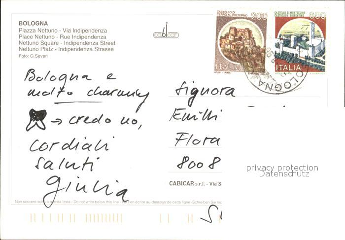 old postcard Bologna Nettuno Platz Indipedenza Strasse postalisch gelaufen Erhaltung siehe scans