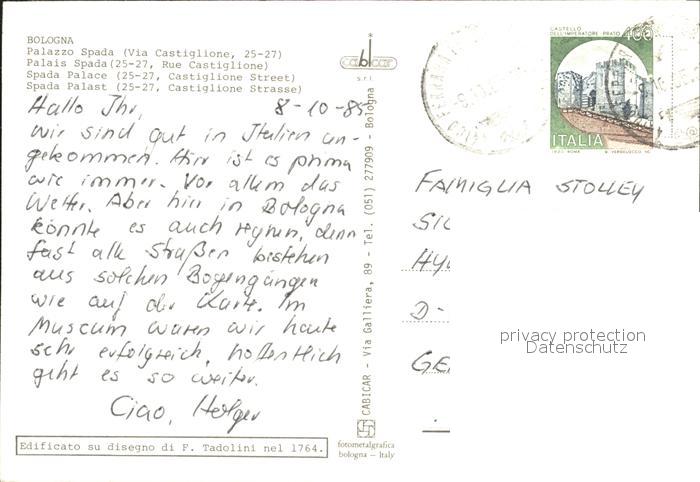 old postcard Bologna Palazzo Spada Via Castiglione postalisch gelaufen Erhaltung siehe scans