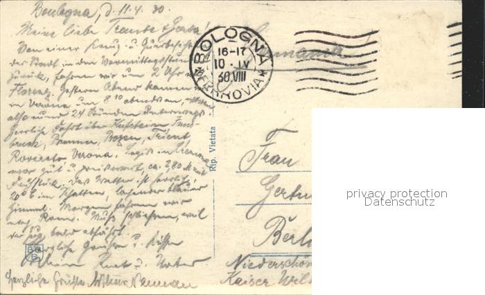 old postcard Bologna Panorama postalisch gelaufen Erhaltung siehe scans