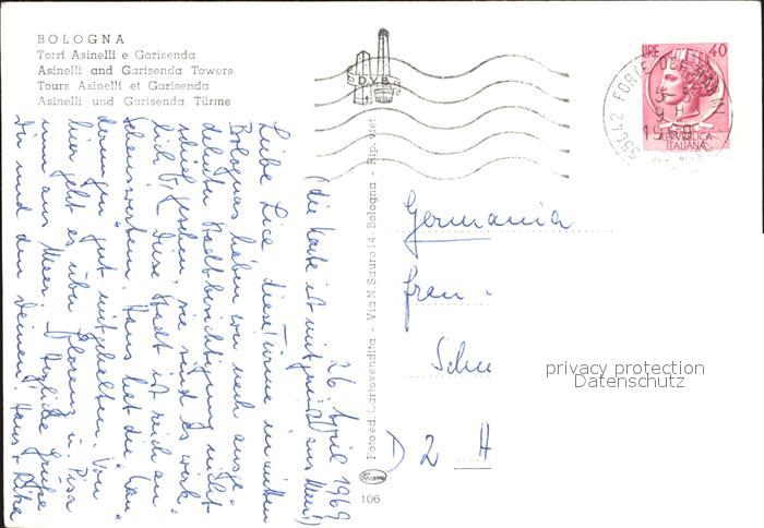 old postcard Bologna Torre Asinelle e Garisenda postalisch gelaufen Erhaltung siehe scans