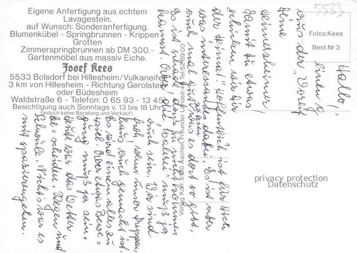 74055228 Bolsdorf Fa Josef Kees Blumenkuebel Springbrunnen Krippen Grotten Gartenmoebel postalisch nicht gelaufen Erhaltung siehe scans [WerneD78] KatCode: 11110007233029