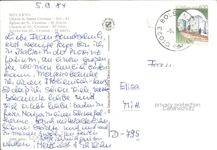 old postcard Bolsena Kirche Santa Christina postalisch gelaufen Erhaltung siehe scans
