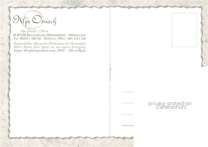 73080470 Bolsterlang Alpe Ornach Hoernerbahn Bergkaese Kuhglocke postalisch nicht gelaufen Erhaltung siehe scans [FriedD77] KatCode: 11110009780116