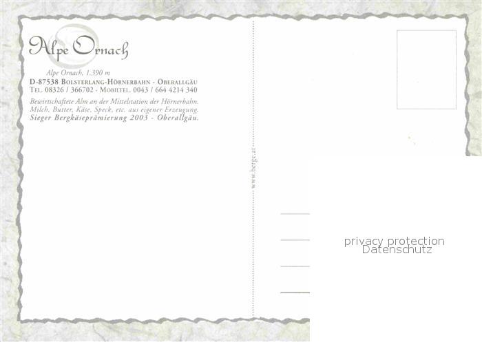 72825262 Bolsterlang Alpe Ornach Kaeserei Glocke postalisch nicht gelaufen Erhaltung siehe scans [FriedD77] KatCode: 11110009780116